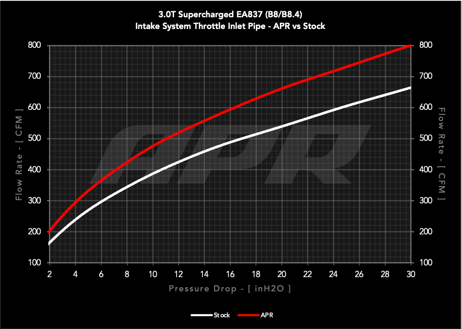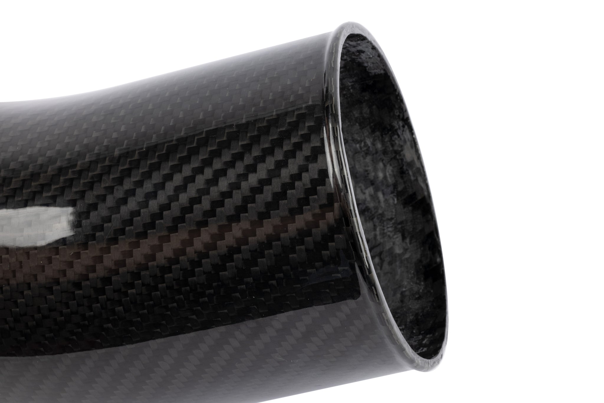 The APR Carbon Fiber Throttle Inlet Pipe is a massive upgrade over the complex factory inlet pipe. Reducing restrictions before the throttle body is necessary to maximize performance on this system. Our system is smooth and direct, and doesn't have extra resonators or restrictions like the factory system. The result is simple: it flows 20% better than stock, sounds better, looks better, and perfectly complements our open intake system!