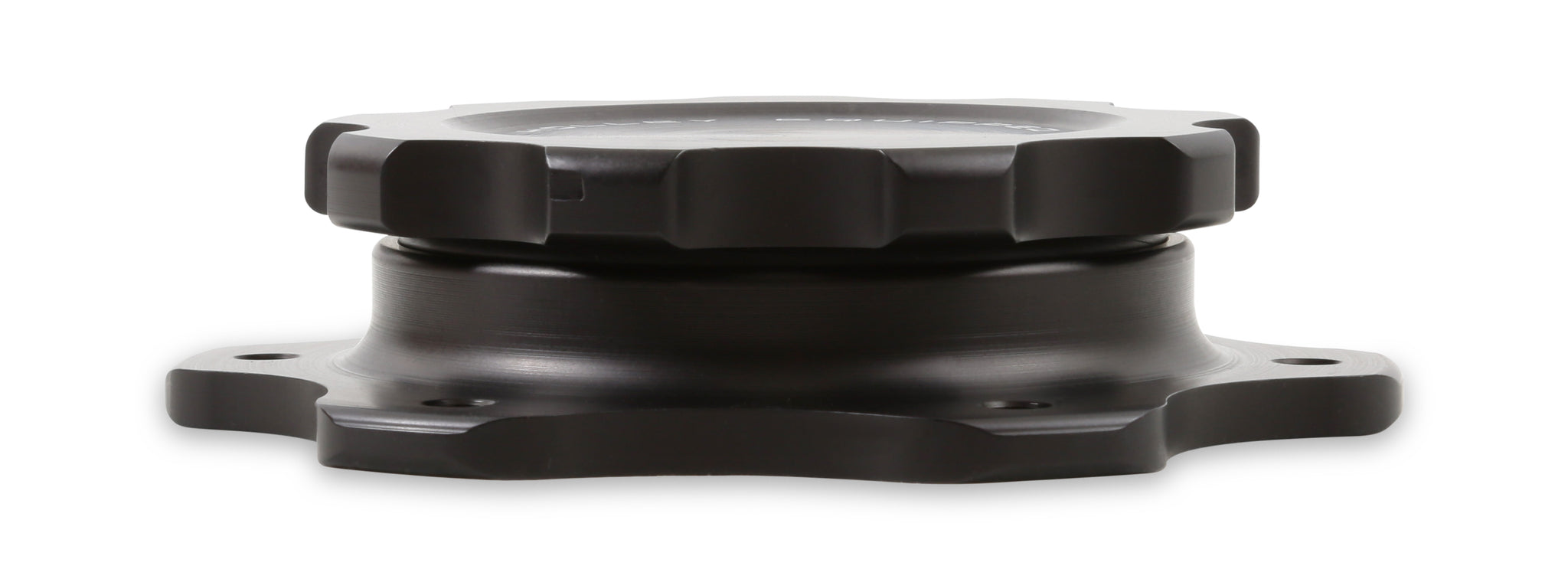 The Holley Billet Fuel Cell Caps are available for Jaz, Harwood, or RCI fuel cells. The 241-226 kit features a 4.438" 6 bolt flange and has a large 3" opening with an easy to grip screw on cap that utilizes an O-ring seal. Stainless steel hardware is included for an easy installation.
