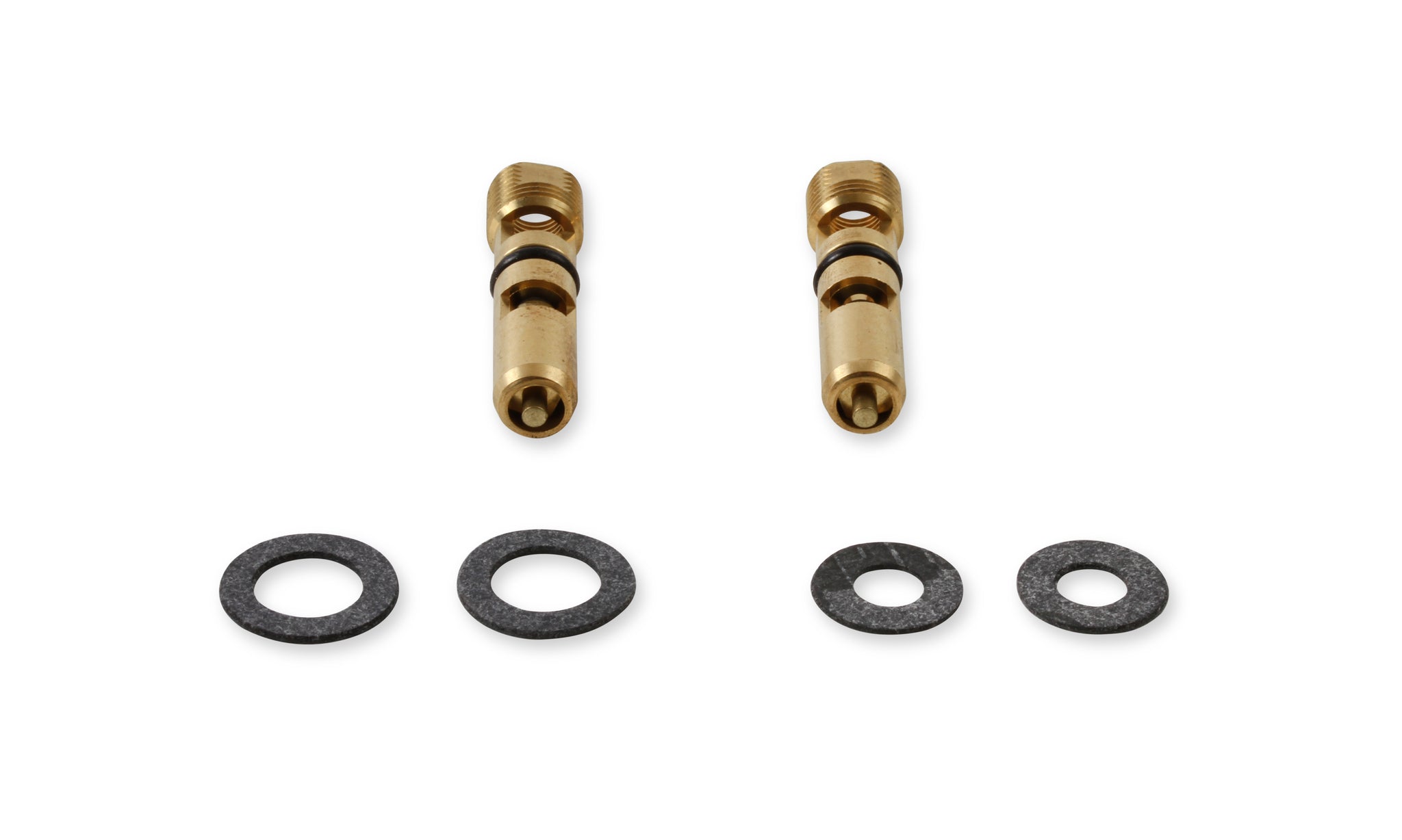 "Steel-tipped" inlet needles are necessary when using exotic racing fuels or alcohol or when using benzine or acetone additives. A .097" seat size should be used for small four barrel carburetors; a .110" seat size should be used for carburetors up to 735 CFM; larger seat sizes should be used with carburetors 750 CFM and larger. The following steel inlet needle and seat assemblies are available from Holley.