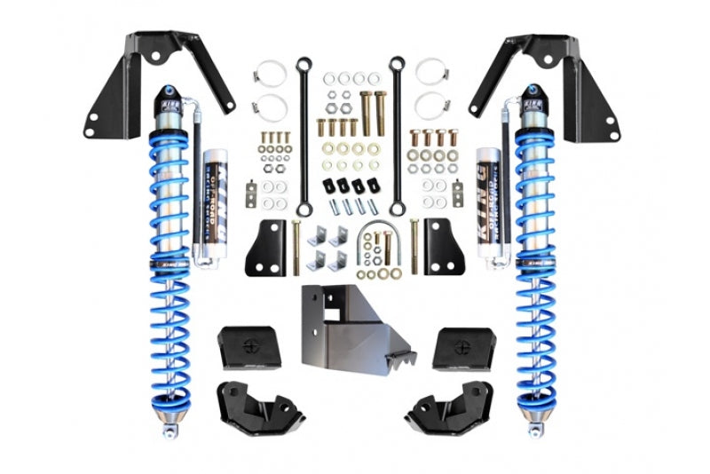 With the same philosophy in mind as the front, we set out to build the most high performance rear coilover kit for the JL. We took the outboard mounting to whole new level but reinforcing both upper and lower mounts keeping the shocks slight reward mounting, optimizing travel without sacrificing the motion ratio. We, with the aid of King Shock Technologies built a specifically valved and tuned custom length 2.5 inch Diameter long travel remote reservoir coilover to maximize wheel travel while minimizing lift height requirements.
