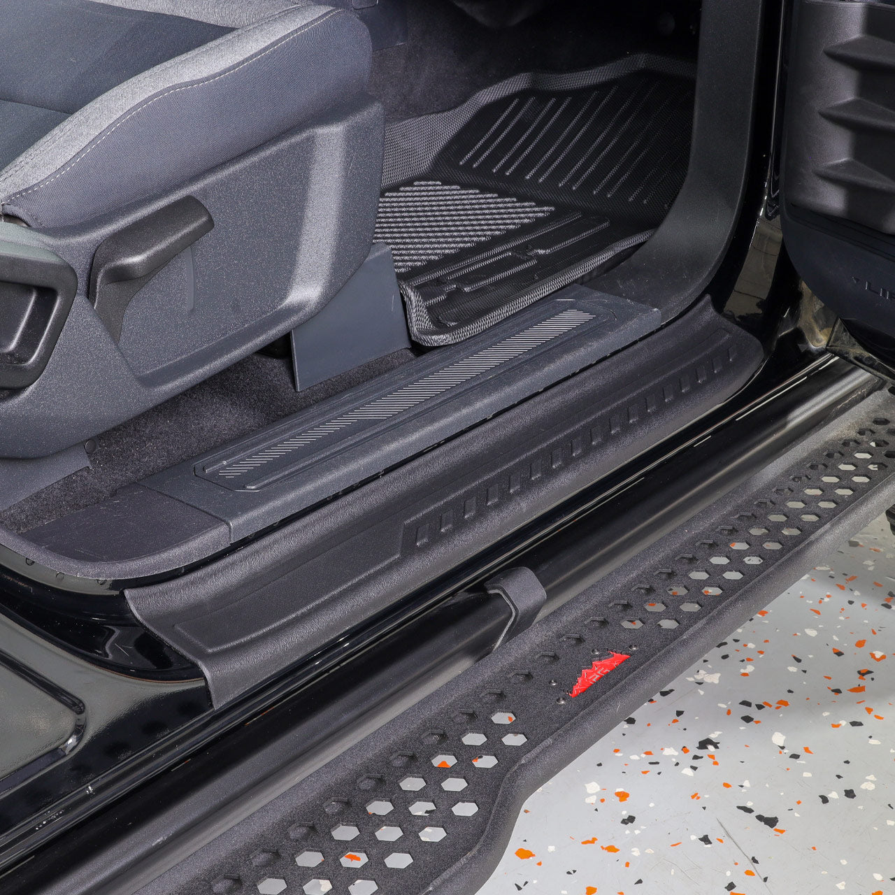 The IAG I-Line Door Sill Protectors for the 2021+ Ford Bronco 2 Door enhance the appearance of your interior while providing useful protection to the door sills. The interior door sills of the Bronco are easily scratched from people and pets entering and exiting the vehicle. The OEM painted door sills can also be slippery when wet. The IAG Door Sill Protectors are constructed of a flexible TPE material to provide an excellent all-weather, non-slip protective layer to your door sills. Each kit includes a left and right door sill protector for maximum protection on your two door Bronco.