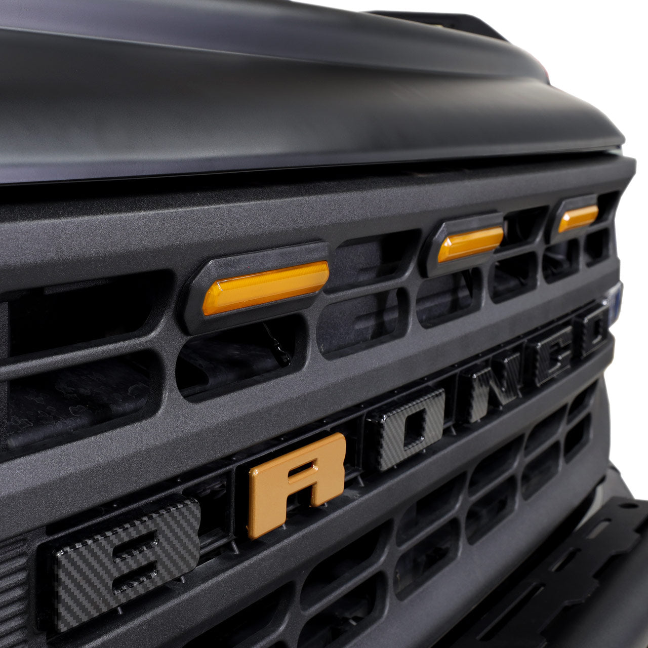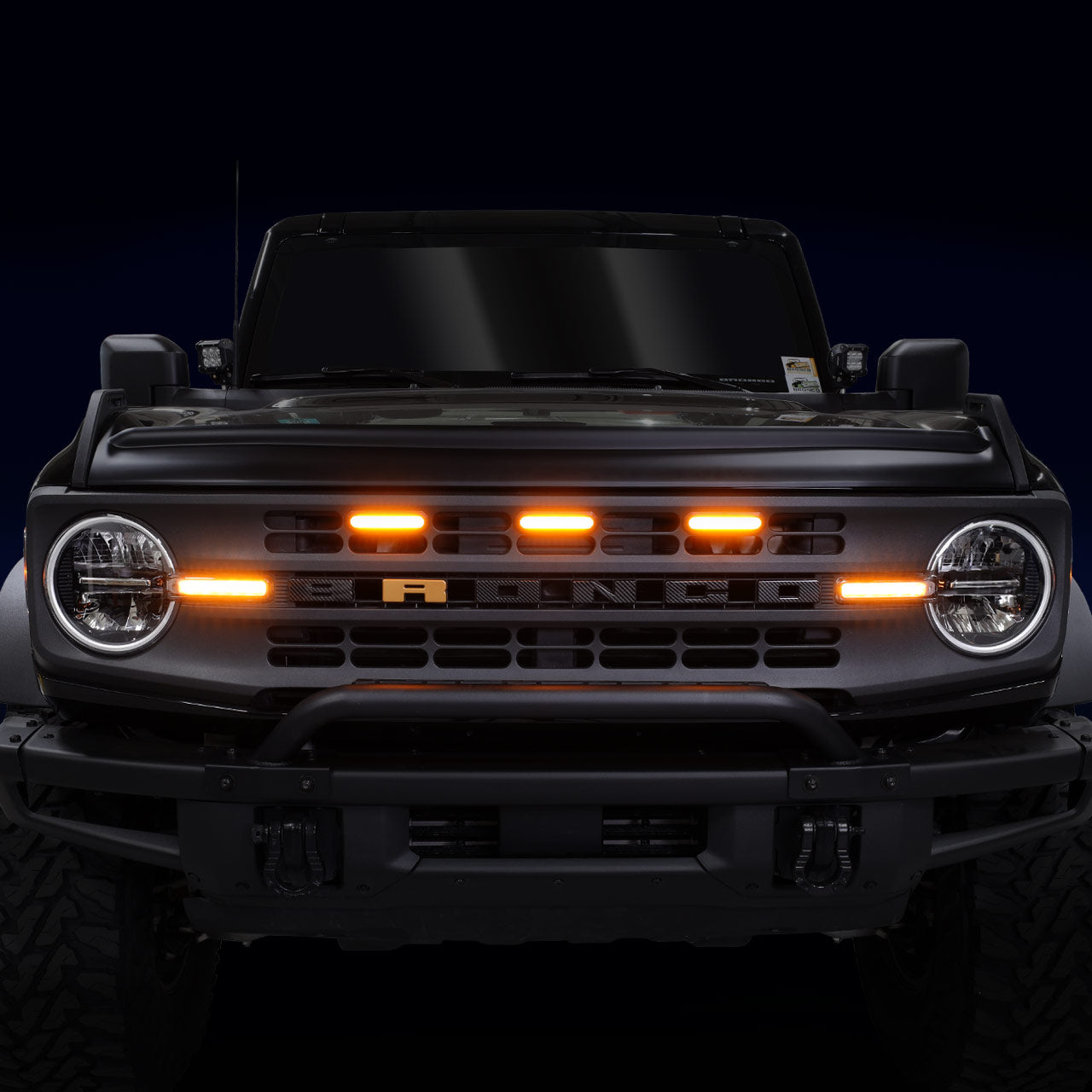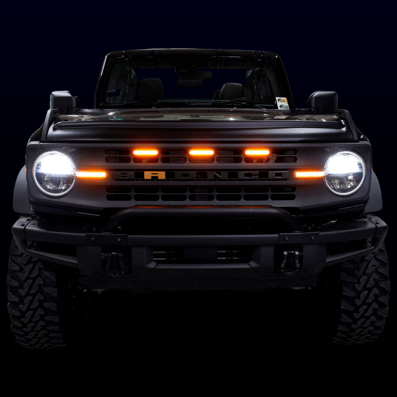 The IAG I-Line 3PC Amber LED Grille Lights add a useful touch of style to the grille of your Bronco and give it that “Raptor” look. The amber LED lights shine brightly in the front of the grill, increasing visibility and alerting other drivers of your position. Constructed of high quality ABS Plastic, the waterproof LEDs feature a super-bright 135 Lumens of light.