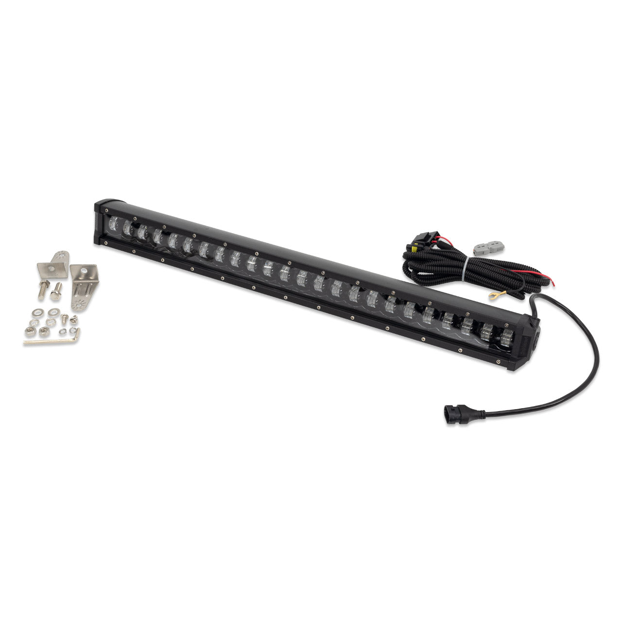 The IAG I-Line White LED Light Bar is designed to mount to our Mini Bull Bar with Long Light Bar Mount. This off-road light bar features 24 Super Bright LEDs for 11,200 lumens. The waterproof housing is constructed of die cast aluminum for strength and durability. Includes waterproof electrical connector and plug and play wiring harness.