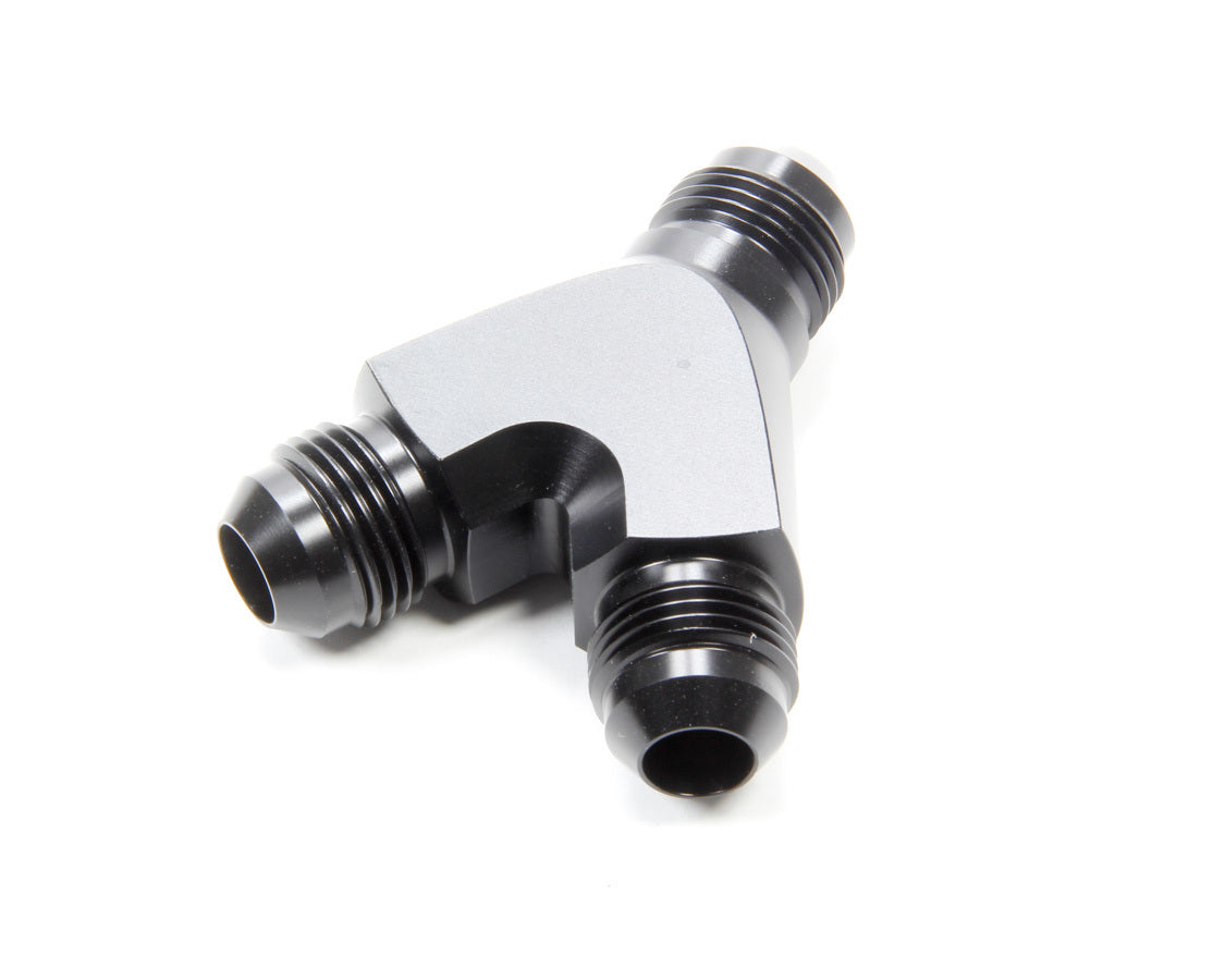 Fitting - Y Block - 8 AN Male Inlet - Dual 8 AN Male Outlets - Aluminum - Black Anodized - Each