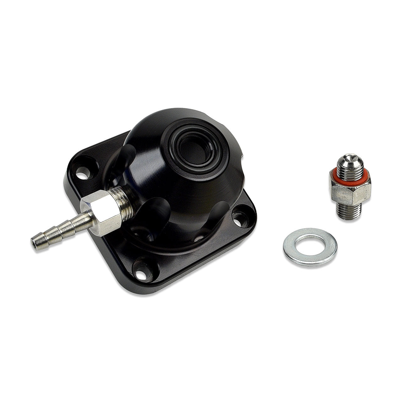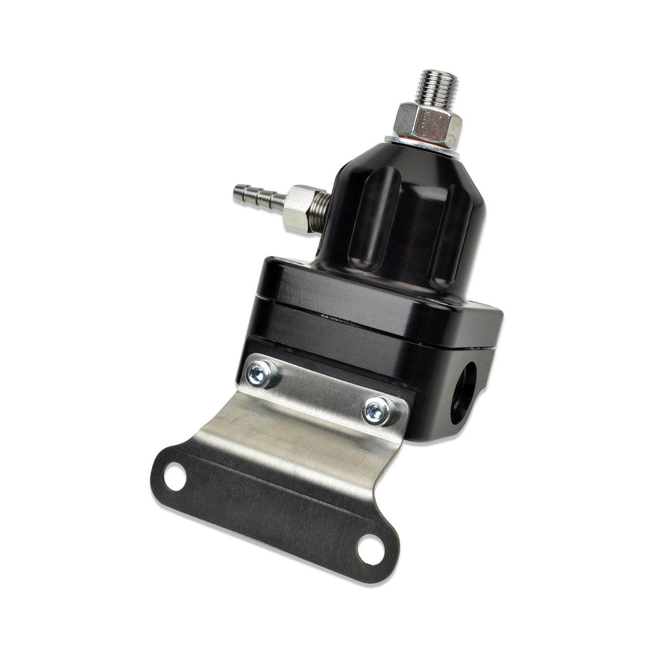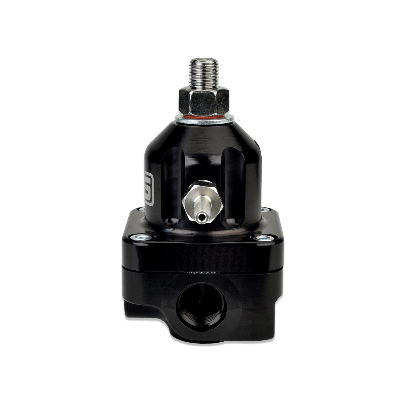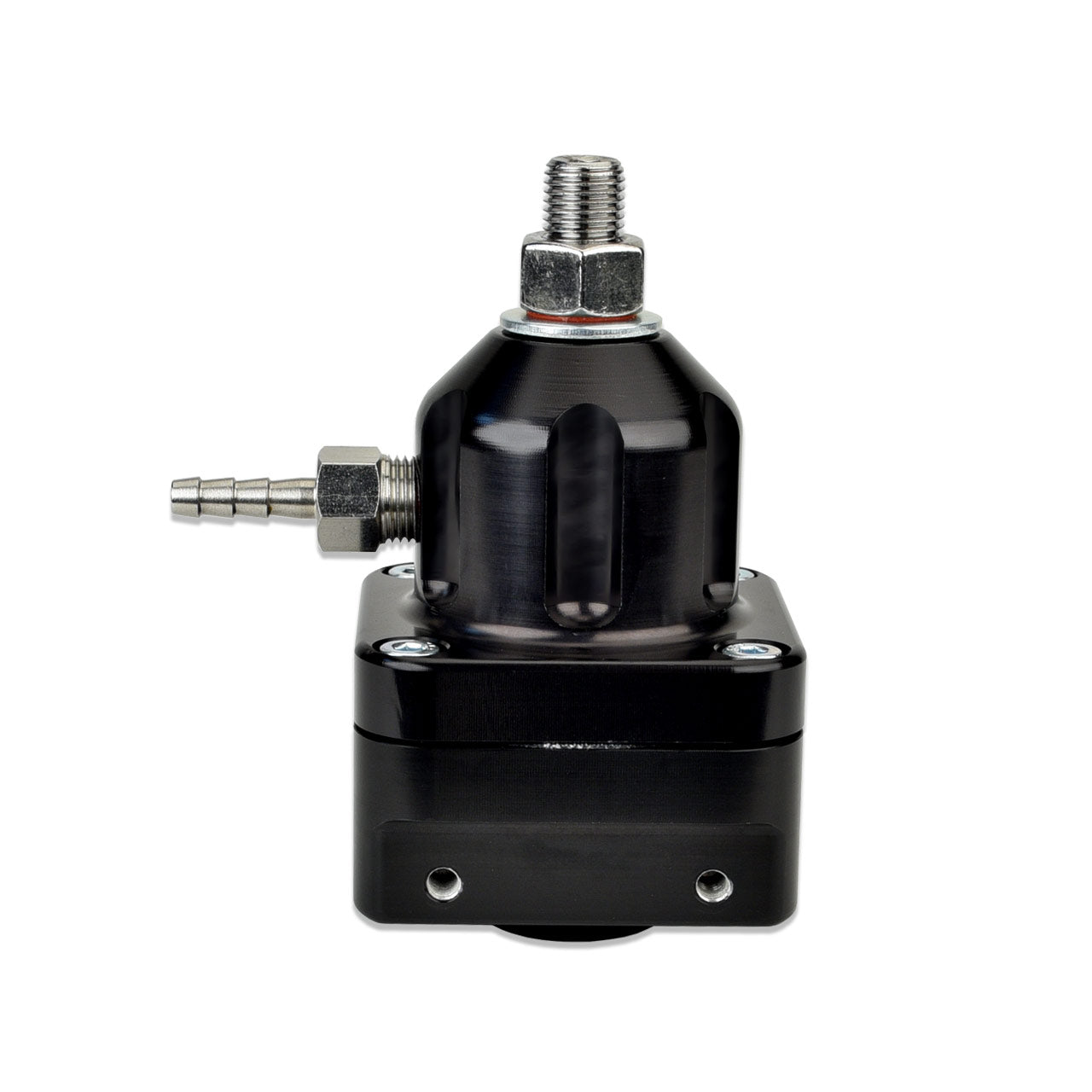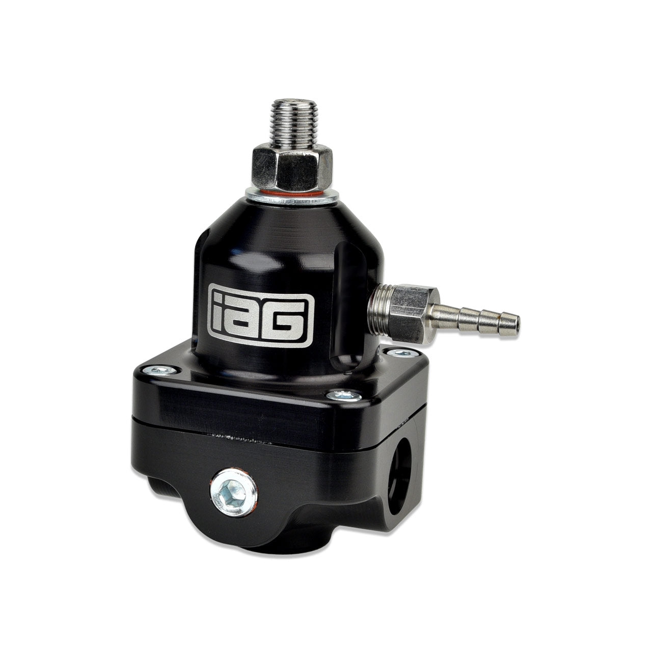 The IAG Adjustable Fuel Pressure Regulator is designed and manufactured in our facility in Westminster, MD. The unit features a unique internal stainless seat and stainless ball for durability and strength. The propietary diaphragm is safe for for gasoline and ethanol fuels. The unit features two ORB-06 Inlet/Outlet Ports and one ORB-06 return port (Fittings NOT Included.) This fuel pressure regulator will function in series, parallel, or dead-head configurations and is suitable for engines making up to 900 BHP. The IAG Adjustable Fuel Pressure Regulator features a unique design which is engineered to eliminate leaks from the vacuum/boost reference side of the regulator. The built-in o-ring groove under the pressure adjuster seals against the washer from the bottom. At the same time, the adjustment lock nut features it's own o-ring to seal the threads of the adjuster and prevent boost leaks. The vacuum/boost reference port is 1/8th NPT and comes with a 1/8" barb fitting pre-installed. The built-in 1/8th NPT fuel pressure gauge port comes with a thread plug or optional IAG Fuel Pressure Gauge for setting base fuel pressure.