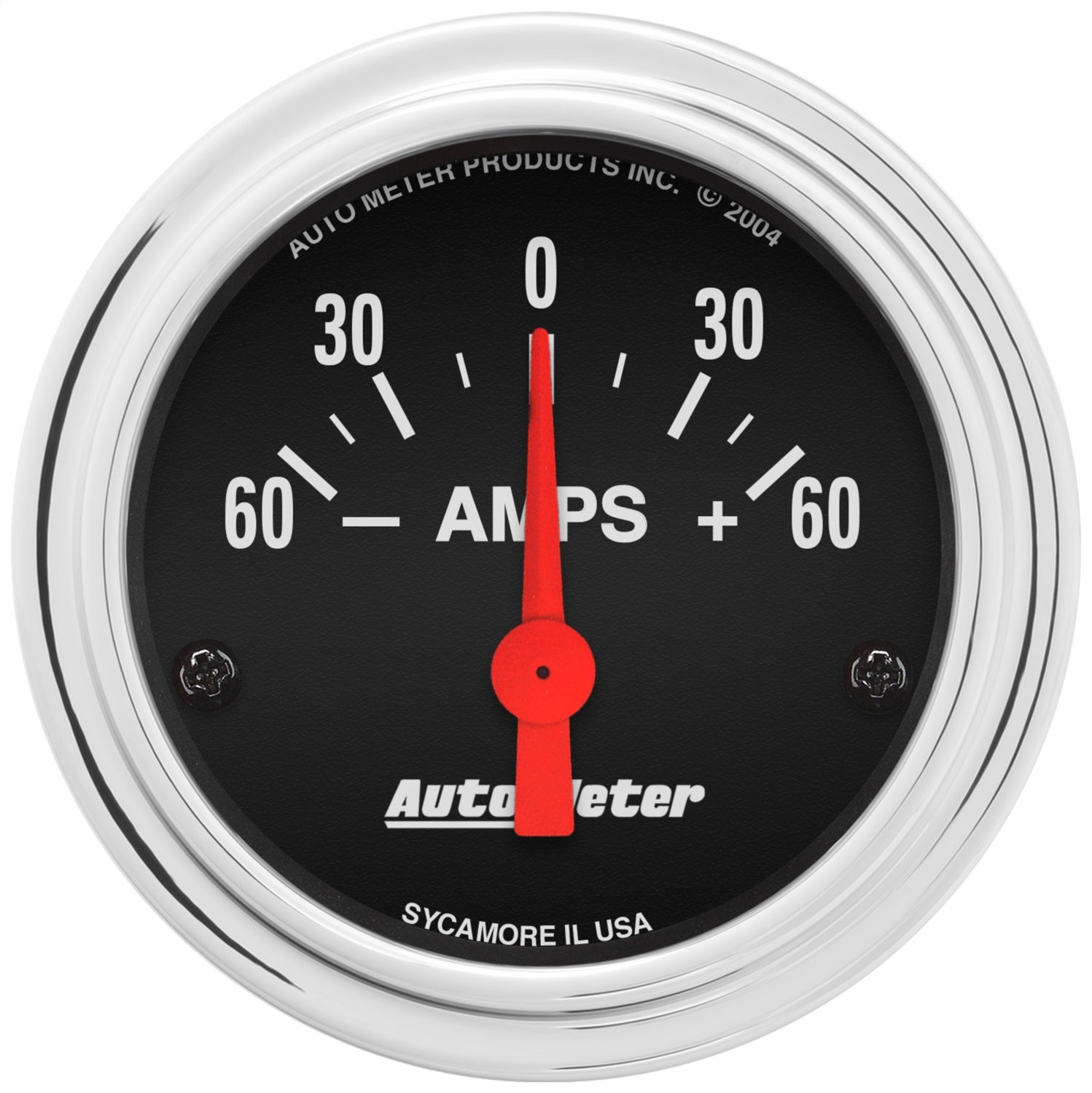 Ammeter - Traditional Chrome - 60-0-60 amps - Electric - Analog - Short Sweep - 2-1/16 in Diameter - Black Face - Each