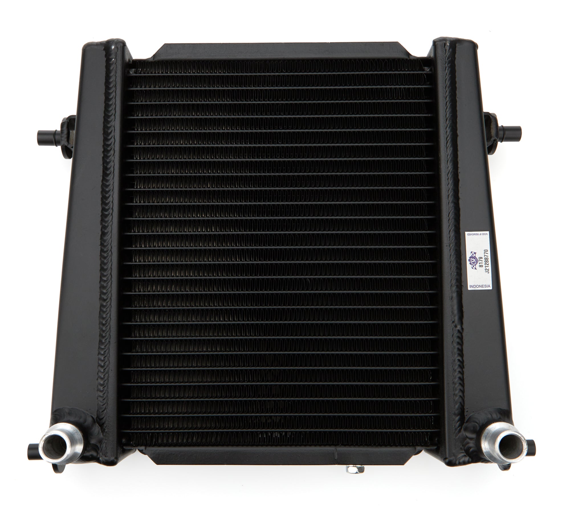 Radiator - Auxiliary - 9.5 in W x 10 in H x 2.5 in D - Driver Side Inlet - Passenger Side Outlet - Aluminum - Black Powder Coat - Toyota Supra 2019-23 - Each