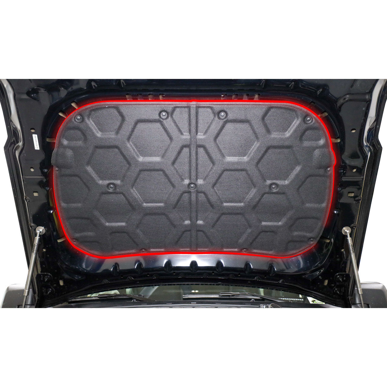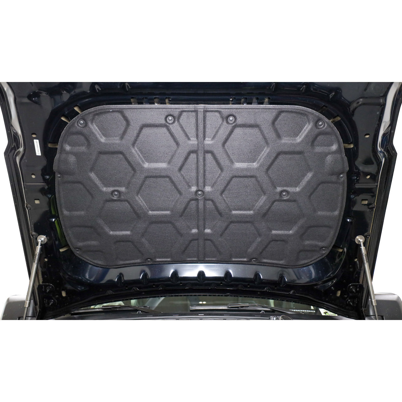 The IAG I-Line Hood Pad Isolator is designed to quiet engine noises and hood vibration on the 2021+ Ford Bronco. Constructed of a flocked fiber material, the attractive hexagon pattern on the pad adds a touch of style under the hood while providing an additional layer of protection from the heat of the engine bay.