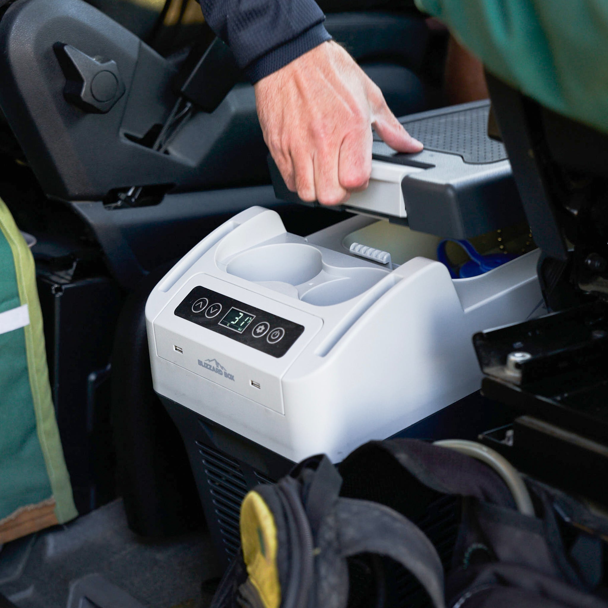 The BLIZZARD BOX Portable Fridge & Freezer will keep your favorite foods and beverages frosty while on the road, off-road, at the campsite, or in the backyard without ice! Our electric coolers are equipped with high-performance, highly efficient Wancool compressors which require minimal power consumption to keep your goods cool, reducing the strain on the vehicle battery. Set the thermostat to temperatures ranging from 0- 50F. Built-in vehicle battery protection technology detects low voltage and shuts down the portable cooler before draining the battery. Power BLIZZARD BOX while on the trails with the included 12V DC power cord, or at home with the 110V AC to DC adapter.