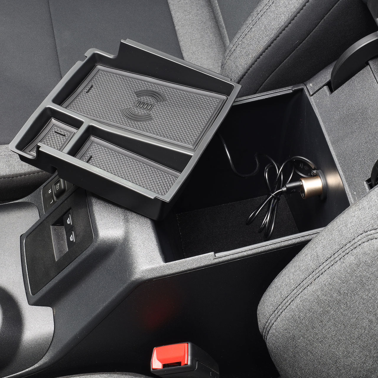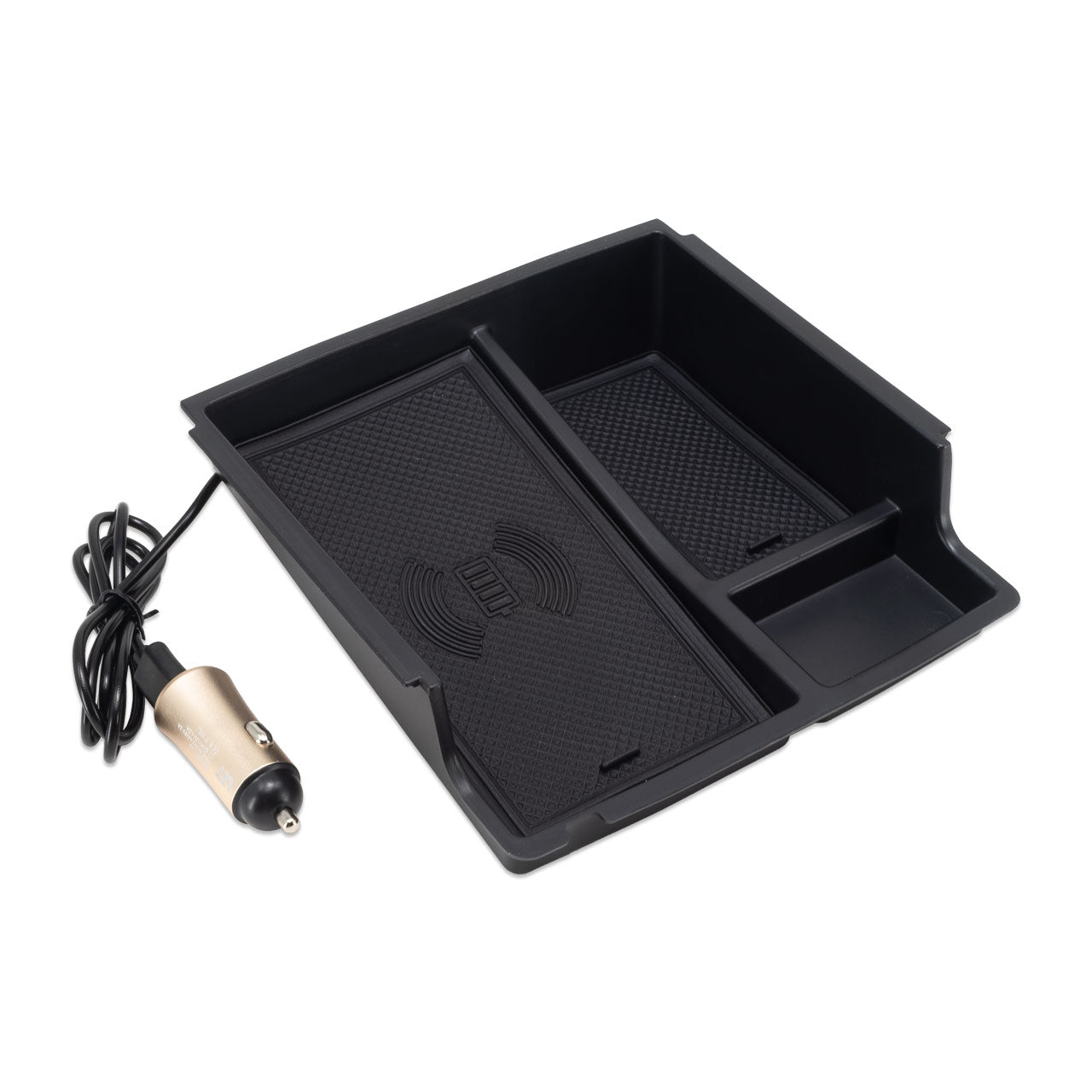 The IAG I-Line Wireless Charging Armrest Organizer provides a secure place to charge your phone and store everyday items such as cards, wallets, cell phones, chargers, coins, etc. Your phone stays out of sight inside the center console while charging. The pad provides up to 15W of wireless charging power and installs easily without any custom wiring. Just plug the tray into the existing USB port or cigarette lighter port in the console.