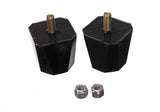 Energy Suspension(R) performance bump stops help cushion a collapsing suspension, preventing bottoming-out and expensive vehicle damage. Hyper-Flex(TM) performance polyurethane bump stops for control arms, traction bars, leaf springs, etc. are guaranteed to last longer and operate more efficiently than original rubber stops. The smaller, general purpose bullet shaped snubber is ideal for control arms. The low profile button head is for use when clearance is limited. Our large competition race style bump stops smooth out compression better and have a large reinforced metal plate welded to the mounting plate and molded-in. Each style is specially designed for a perfect and custom fit and each style has it's own durometer, hardness, characteristics. Energy's wide selection of bump stops are available in red or black color.