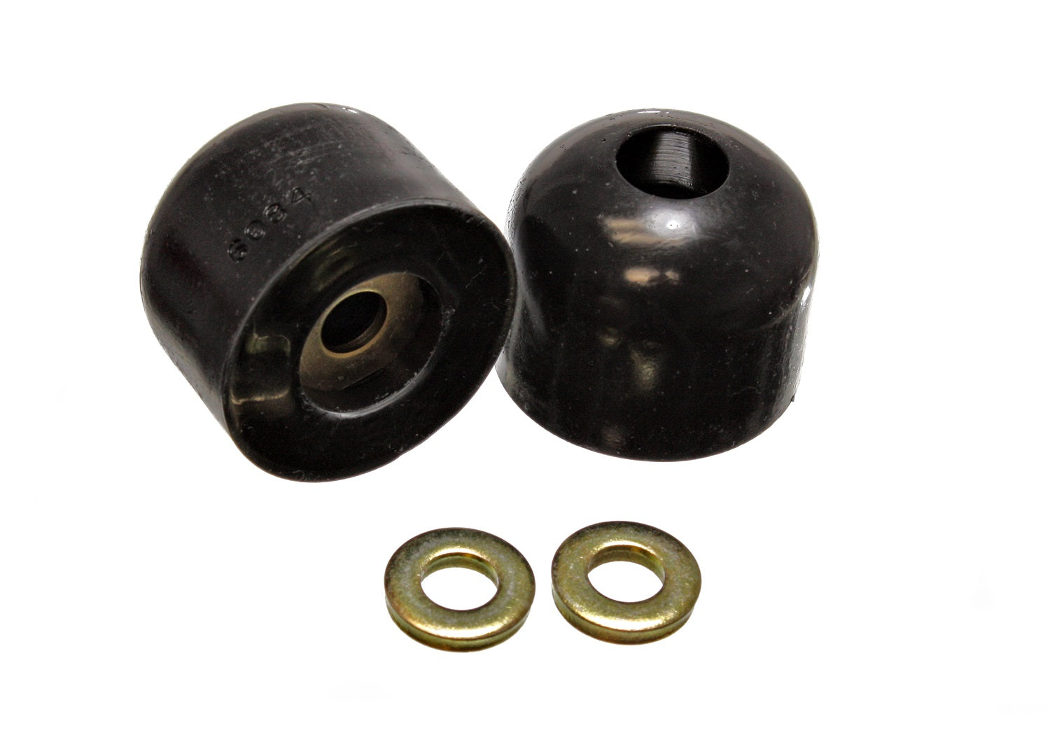Energy Suspension(R) performance bump stops help cushion a collapsing suspension, preventing bottoming-out and expensive vehicle damage. Hyper-Flex(TM) performance polyurethane bump stops for control arms, traction bars, leaf springs, etc. are guaranteed to last longer and operate more efficiently than original rubber stops. The smaller, general purpose bullet shaped snubber is ideal for control arms. The low profile button head is for use when clearance is limited. Our large competition race style bump stops smooth out compression better and have a large reinforced metal plate welded to the mounting plate and molded-in. Each style is specially designed for a perfect and custom fit and each style has it's own durometer, hardness, characteristics. Energy's wide selection of bump stops are available in red or black color.