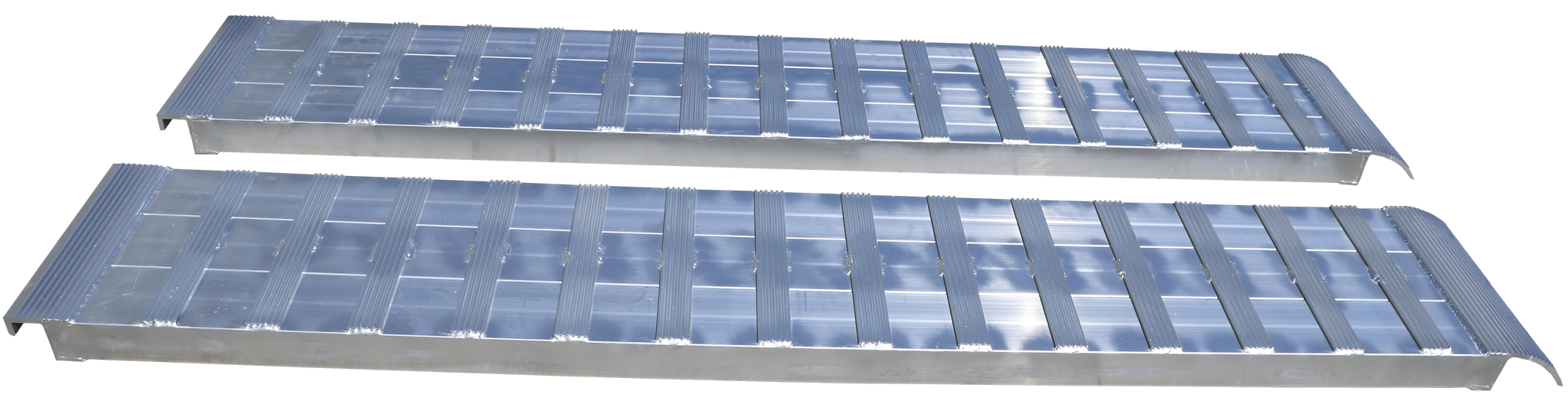 Description_MKT GEN-Y aluminum loading ramps are a multi-piece ramp system designed for loading vehicles or other wheeled equipment onto docks, trucks, or trailers. Their lightweight aluminum construction makes them lightweight and portable without sacrificing any toughness! These portable aluminum ramps are a great solution for all your loading and unloading needs. From flatbed trailers to loading docks, these ramps provide heavy-duty support as well as excellent traction due to their textured cross-patterns. This provides extra support and safety for wet and/or muddy tires.