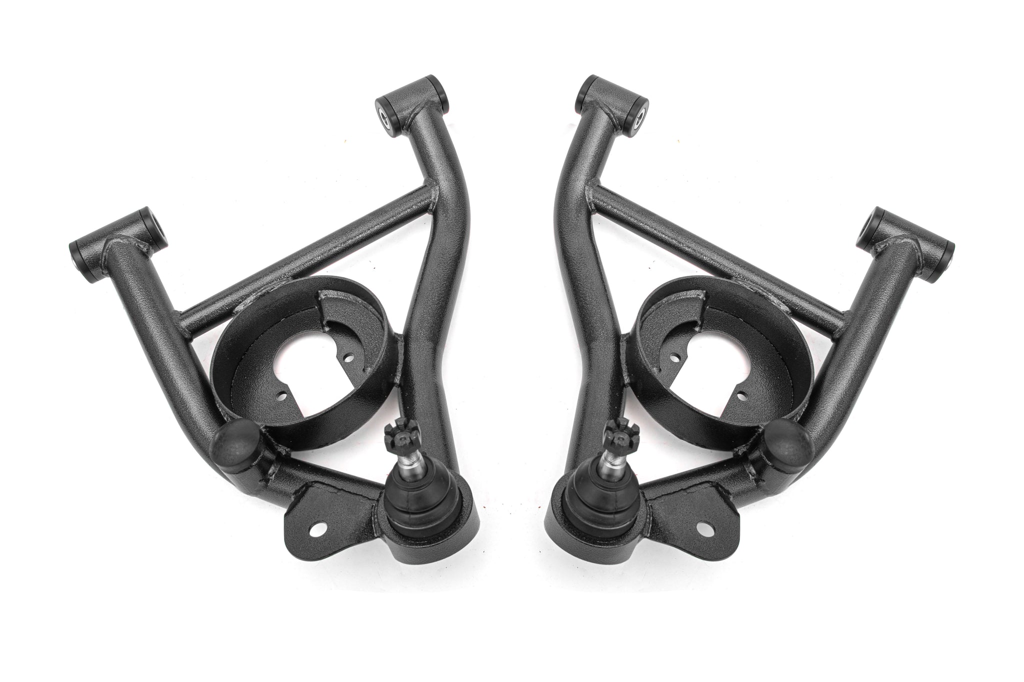 A-arms are one of the most important, yet overlooked suspension components. They are the direct link between the front wheels and the chassis. Any deflection causes a change in alignment, which results in poor performance and driving feel. Fabricated from heavy-duty 1.500-inch, 0.095-inch wall and 1.525-inch, 0.095-inch wall DOM tubing with laser-cut, CNC-formed plate steel braces for extra strength, deflection is eliminated with A-arms from BMR Suspension. BMR?s AAL331 Lower A-arms are fitted with heavy-duty ball joints and greaseable, Delrin bushings add a solid, more responsive feel over the stock rubber bushings. BMR?s bushings are internally fluted, which allows grease to evenly coat the inner sleeve. These flutes also direct grease to the outer edge of the bushing, keeping the thrust surface lubricated. This efficient lubrication ensures reliable operation over the life of the bushings.