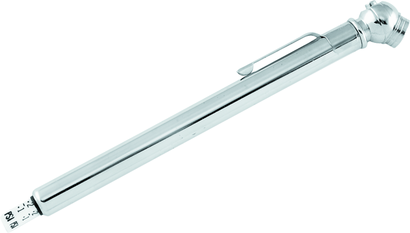 With a chrome-plated brass body, the BikeMaster® Pen-Type Tire Gauge clearly marked, easy-to-read measurements.