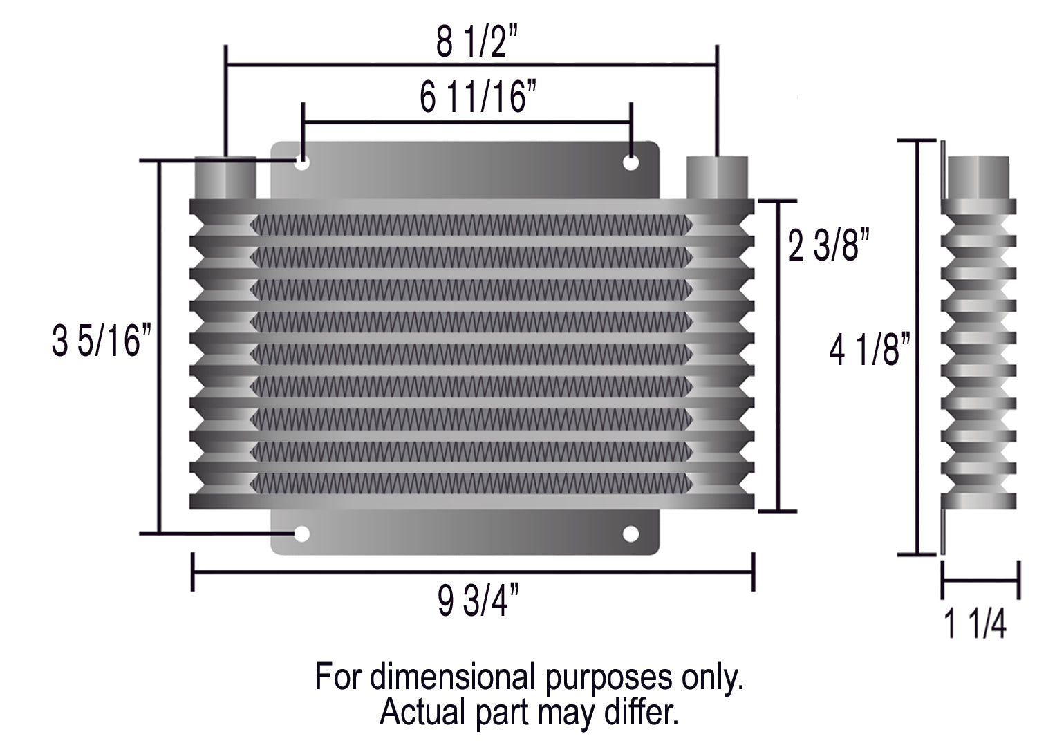 Very popular with original equipment manufacturers for use on their towing applications, our Plate and Fin coolers is no exception, featuring strong furnace-brazed construction, 1 1/4" wide plates and embossed turbulators which maximize heat transfer while also minimizing pressure drop. This unit is perfect for light to medium duty use and occasional towing. It greatly extends transmission life by preventing heat-related transmission failures, and improve shifting performance. Built with 1/2" NPT female cooler ports and includes 1/2" NPT x 3/8" hose barb adapters.
