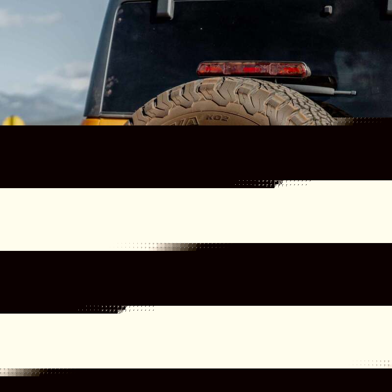 • All tires, full suspension lift kits, oversized bumpers, tire carriers, body tubs, hard tops, cargo racks and drivetrain parts