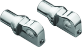 Modified standard Male Footpeg adapters with an adjustable stop, which now makes it possible to install conventional clamp-on highway pegs on an engine guard that would normally cause the pegs to angle down toward the ground.