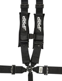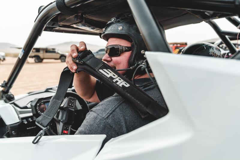 Whether racing, running the dunes, or crawling the Rubicon, the 5.3 Harness will hold you in tight. This 5 point harness with 3" belts has sewn in pads for comfort, all black hardware for style and EZ adjusters on the shoulders. The EZ adjusters allow you to adjust your shoulder straps quickly and even if they are dirty or muddy. The seat belt also has a removable sternum strap, and a red latch guard on the lap belt. The lap belt bolts in. The shoulder harness and crotch strap can either bolt down or wrap around a roll bar. SFI 16.1 certified for racing. Warning Proper installation and consistent use of the 5 point harness restraint system is critical to your safety in event of accident. To reduce risk of serious injury or death: Follow vehicle manufacturers, and PRP Seats instructions and safety messages during installation and use of this product. Use all belts provided. Secure lap belt first; low and snug across hips. Sternum strap tight at chest line (min. 4” below neck). Adjust remaining straps per instructions and confirm fitment restrains user & provides safe clearance from wheel, dash, roll cage, etc. Inspect all components of the 5 point harness restraint system regularly & replace as indicated by accident, wear or abrasion. Replace no later than 2 years from date on SFI 16.1 tag.  This 5 point competition restraint system is intended for UTV or other off-road vehicle-not replacement for FMVSS 209 restraints. Never use with child car seats or boosters.