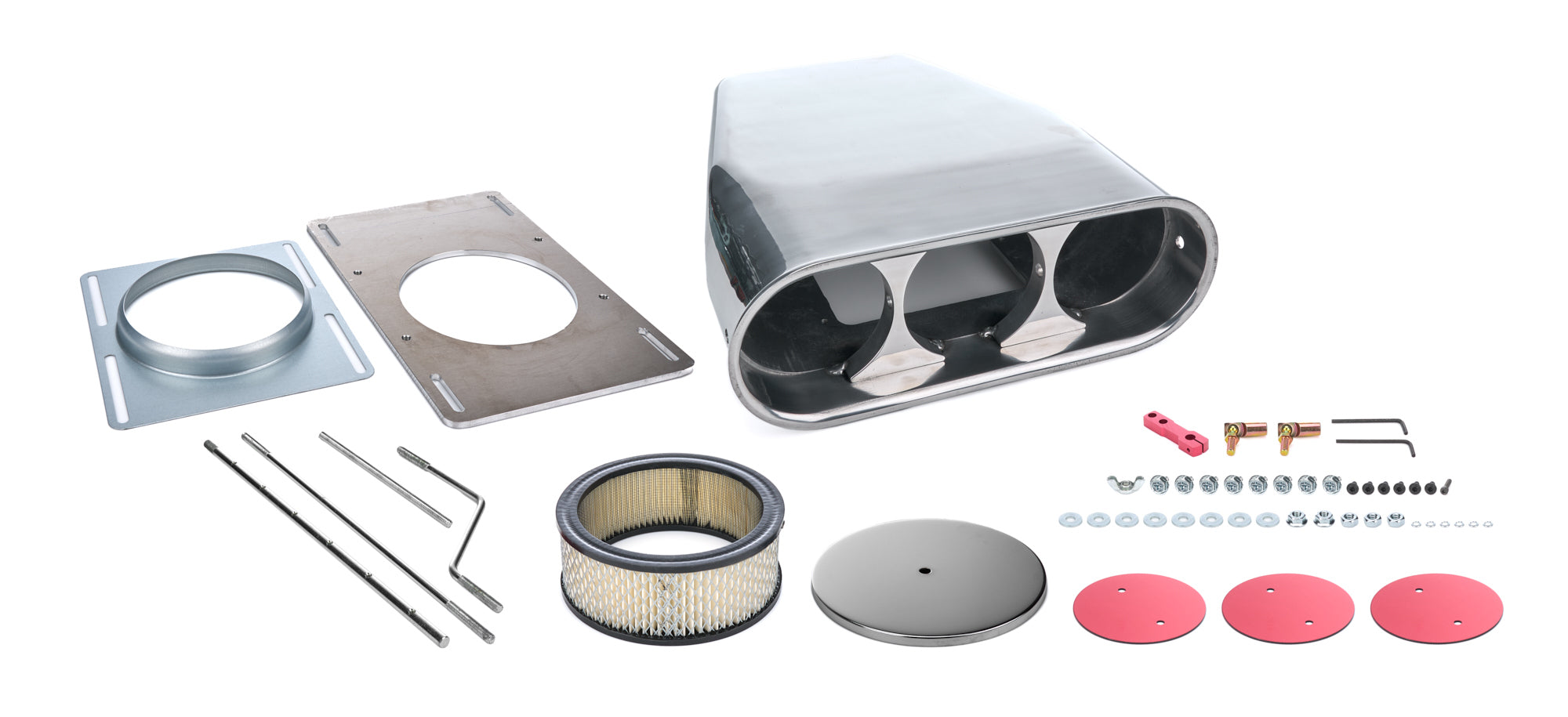 Air Cleaner Assembly - Street Scoop - Plain - 14.5 in Long - Single 5-1/8 in Carb Flange - Aluminum - Polished - Kit