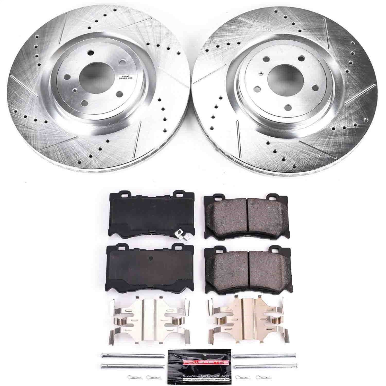 Description_KEY PowerStop Power Stop Brake Brakes Premium Best Extreme Performance Evolution Bolt-On Bolt On Upgrade Brake kit kits Rotors Pads Z23 Daily Driver Carbon-Fiber Ceramic Brake Pad and Drilled/Slotted Rotor Kit 2008 2009 2010 2011 2012 2013 2014 2015 2016 2017 2018 2019 2020 2021 08 09 10 11 12 13 14 15 16 17 18 19 20 21 Front G37 FX50 350Z 370Z M37 M56 M35h Q50 Q60 Q70 QX70 Q70L INFINITI Nissan