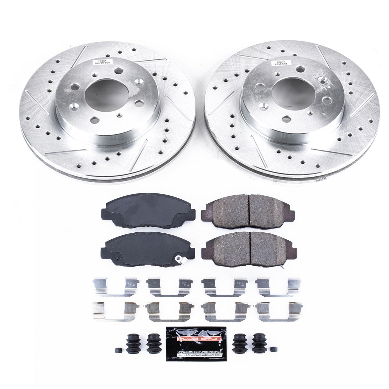Description_MKT PowerStop is on a mission to deliver an easy way for any driver to upgrade their brakes - no matter where or how they use their vehicle. Forget standard, off-the-shelf parts. Our Z23 Evolution Sport Brake Upgrade Kit comes with everything you need, from pads, rotors and premium stainless-steel hardware for an easy, bolt-on upgrade for your daily-driver. Along with increased braking power, the Carbon-Fiber Ceramic brake pads feature a low-dust formula to keep those wheels looking great while you say goodbye to nasty brake dust. These pads combine with Drilled & Slotted rotors to ensure a cool, smooth ride that protects against rust and corrosion. Give your daily-driver the easy and affordable performance upgrade it deserves with the Z23 Evolution Sport Brake Upgrade Kit.