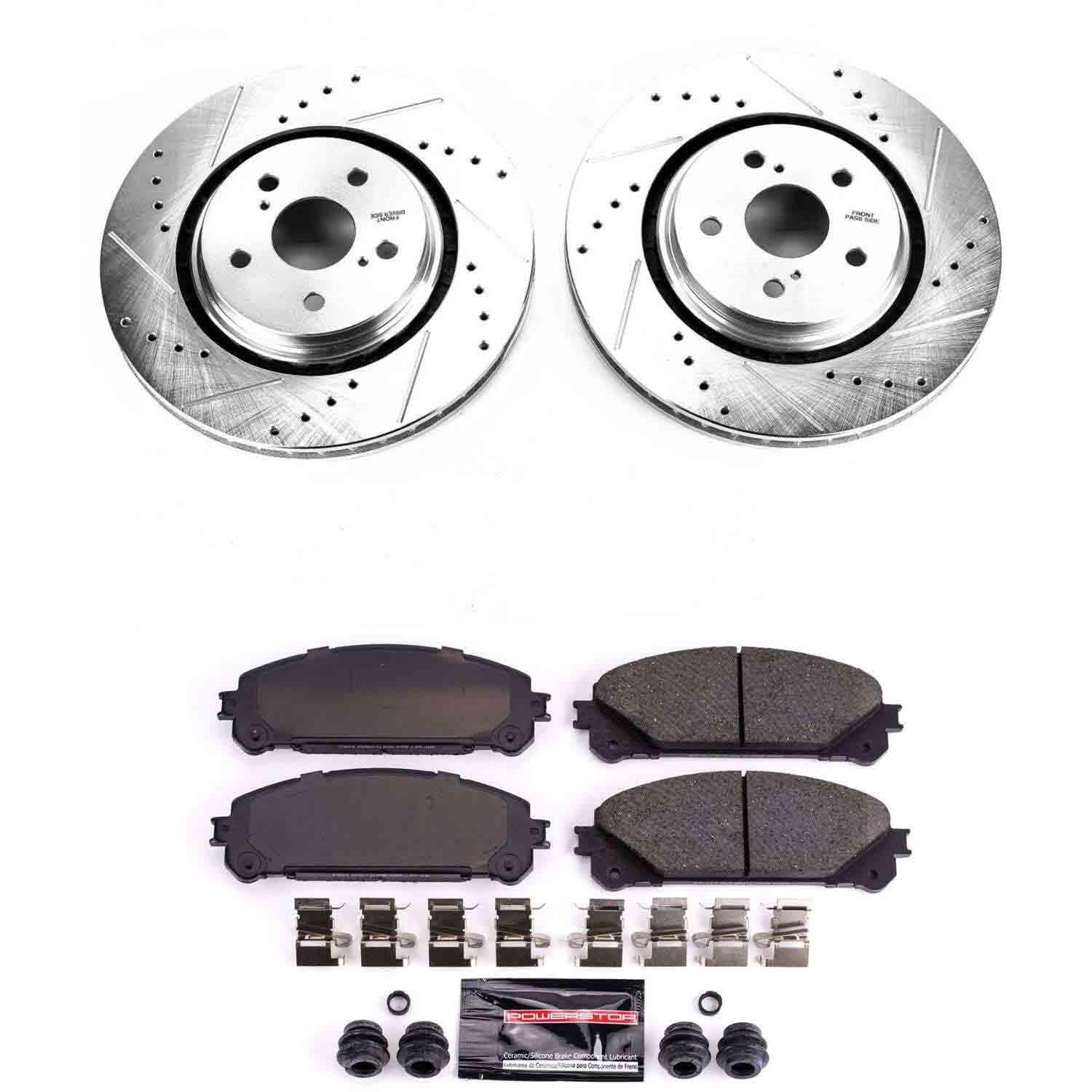 Description_KEY PowerStop Power Stop Brake Brakes Premium Best Extreme Performance Evolution Bolt-On Bolt On Upgrade Brake kit kits Rotors Pads Z23 Daily Driver Carbon-Fiber Ceramic Brake Pad and Drilled/Slotted Rotor Kit 2016 2017 2018 2019 2020 2021 2022 16 17 18 19 20 21 22 Front RX350 RX450h RX350L RX450hL Avalon Camry Lexus Toyota