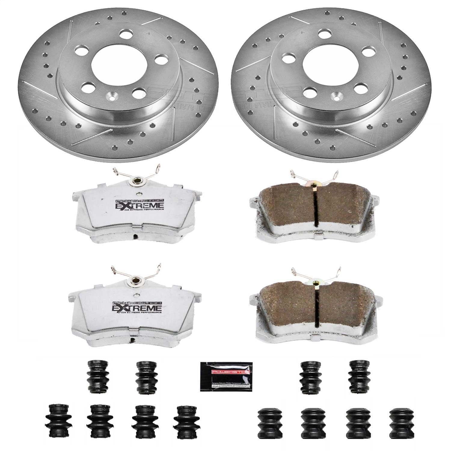 Description_KEY PowerStop Power Stop Brake Brakes Premium Best Extreme Performance Evolution Bolt-On Bolt On Upgrade Brake kit kits Rotors Pads Z26 Street Performance Ceramic Brake Pad and Drilled/Slotted Rotor Kit 2000 2001 2002 2003 2004 2005 2006 00 01 02 03 04 05 06 Rear TT Quattro Audi