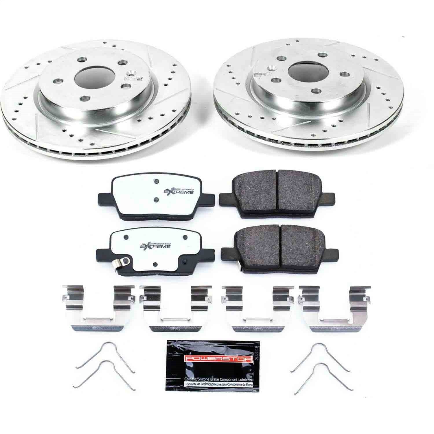 Description_KEY PowerStop Power Stop Brake Brakes Premium Best Extreme Performance Evolution Bolt-On Bolt On Upgrade Brake kit kits Rotors Pads Z26 Street Performance Ceramic Brake Pad and Drilled/Slotted Rotor Kit 2016 2017 2018 2019 2020 2021 16 17 18 19 20 21 Rear CT6 Camaro Cadillac Chevrolet Chevy