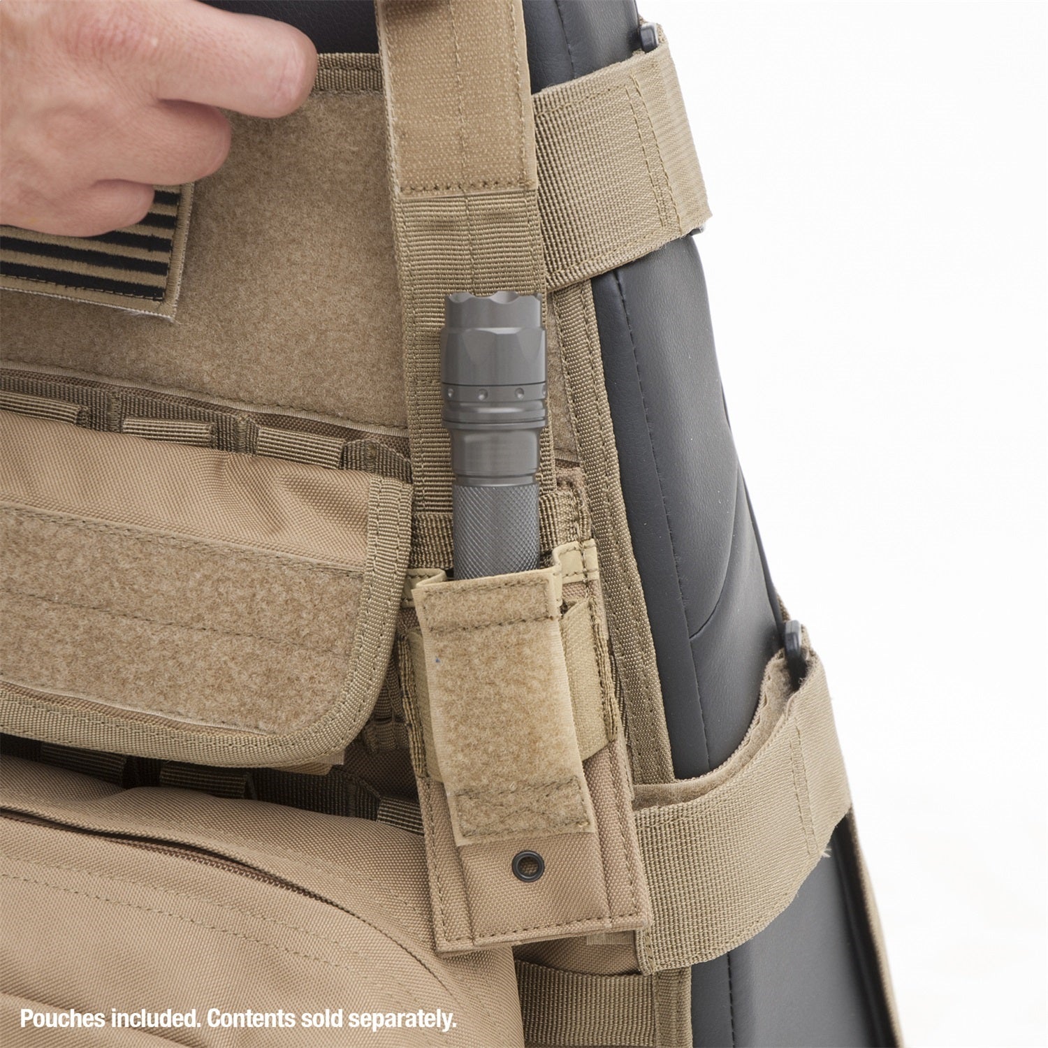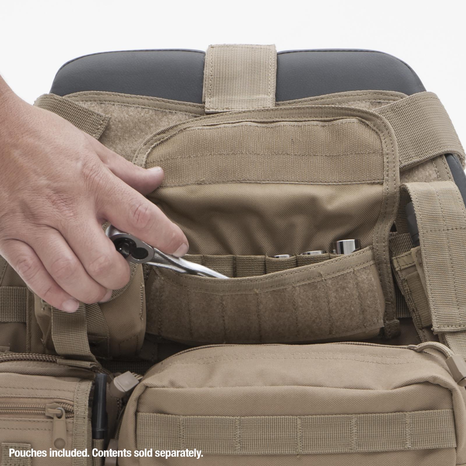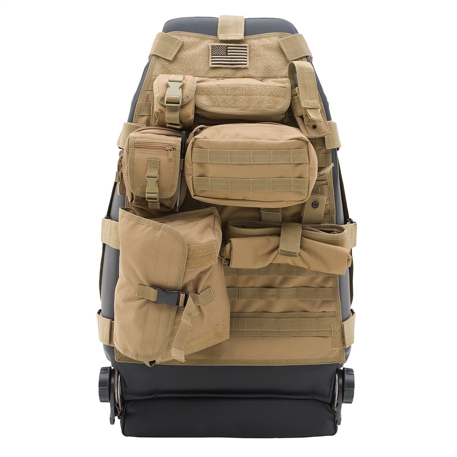 The ultimate storage solution for your off road vehicle! The G.E.A.R. seat cover is a completely new way of looking at storage for your off road needs. Each cover is manufactured from 600 Denier Polyester with a PVC liner and is completely adjustable. The G.E.A.R. comes with five different pouches that securely fasten using a Molle/Pals Restraint System which will not come loose under the harshest off road conditions. It Foots offered in three different colors; Black, Coyote Tan and Olive Drab Green and is completely UV stable. Smittybilt provides the best in G.E.A.R for all of your Off Road Needs. Available in Black (01), Tan (24) and Olive Drab (31).