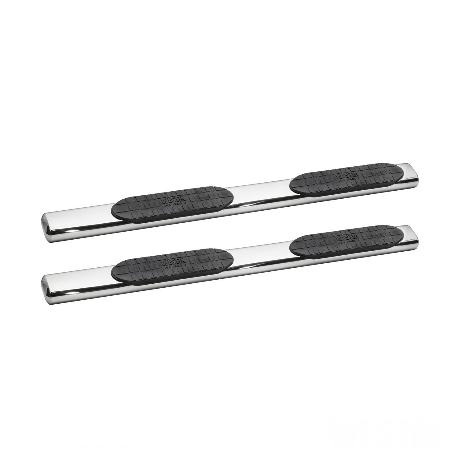 Description_MKT Westin PRO TRAXX 6 for full-sized trucks are cab-length steps for ideal functionality and cab access. They feature extra heavy-duty bold step pads and a unique oval tube shape in a straight tube design. Applications are vehicle specific bolt-on, no-drill and rocker panel mounted. Available in polished stainless steel, backed by a lifetime warranty, and black powder coated mild steel, backed by a 3 year warranty.