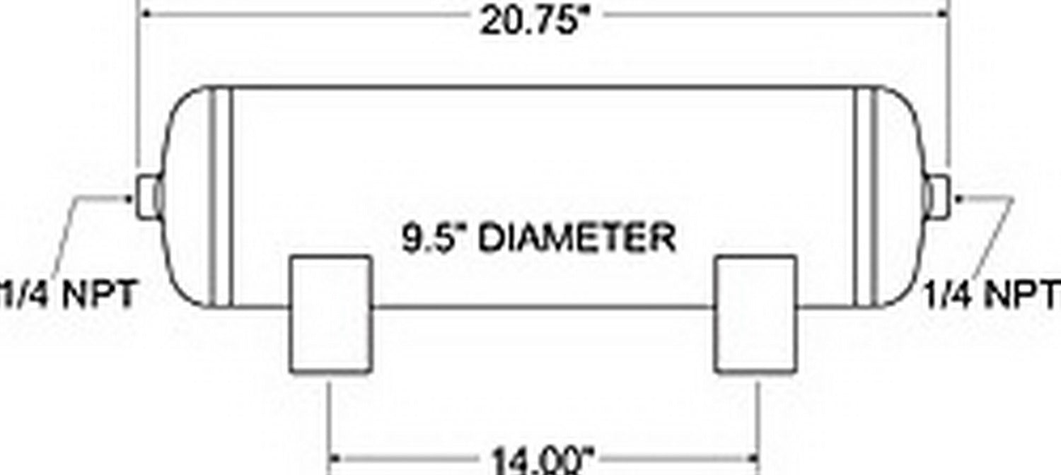 This Firestone air tank provides a source of compressed air for an air spring system. Tank has 5-gallon capacity and (2) 1/4 in. NPT ports. Tank is enamel coated to resist corrosion, tested to be SAE J10 compliant and capable of 150 psi. Features: Provides compressed air source for an air helper spring system Allows for faster inflation of air springs Holds 5 gallons of compressed air Includes (2) 1/4 in. NPT ports Steel tank with brass fittings Resists corrosion with internal and external enamel coating Is SAE J10 compliant Operates at up to 150 psi of maximum pressure Specs: Tank dimensions: 20.75 in. long x 9.5 in. diameter Tank capacity: 5 gallons Inflation ports: 1/4 in. NPT PSI: Maximum of 150 2-Year limited warranty