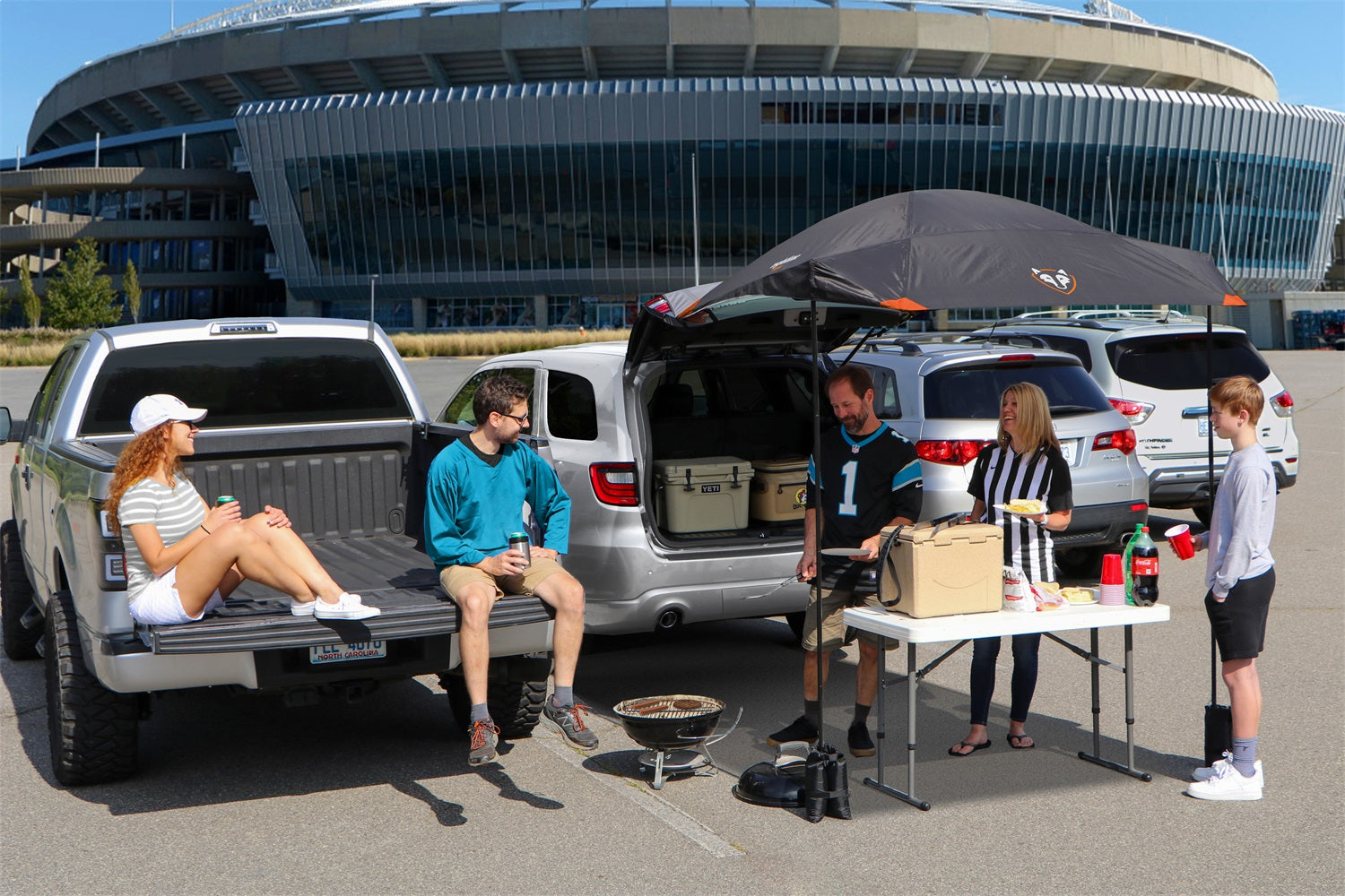 The Rightline Gear SUV Tailgating Canopy provides easy shade at the game or the campground. The Canopy attaches to your rear hatch door and extends out from the vehicle. The sandbags attach to the Canopy's poles to keep them firmly planted to the ground, even in a strong wind. Traditional E-Z Up Tents are too large for stadium parking spaces, require a long set up time, and blow around in the wind. Take your tailgating experience to the next level with the SUV Tailgating Canopy!