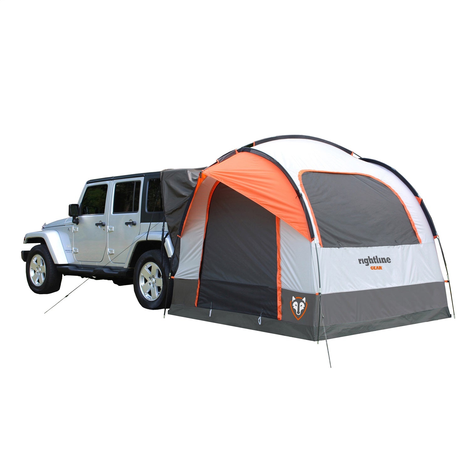 The Rightline Gear SUV Tent lets you sleep off the ground in the comfort of your own vehicle. The tent connects to the back of any size SUV, minivan, wagon, or pick-up truck with cap. Large size no-see-um mesh windows and doors have storm covers that can be closed for privacy. The SUV Tent features (2) gear pockets, a lantern hanging hook, and glow-in-the-dark zipper pulls. The vehicle sleeve easily disconnects, allowing you to leave the tent behind as you go about the days adventures.