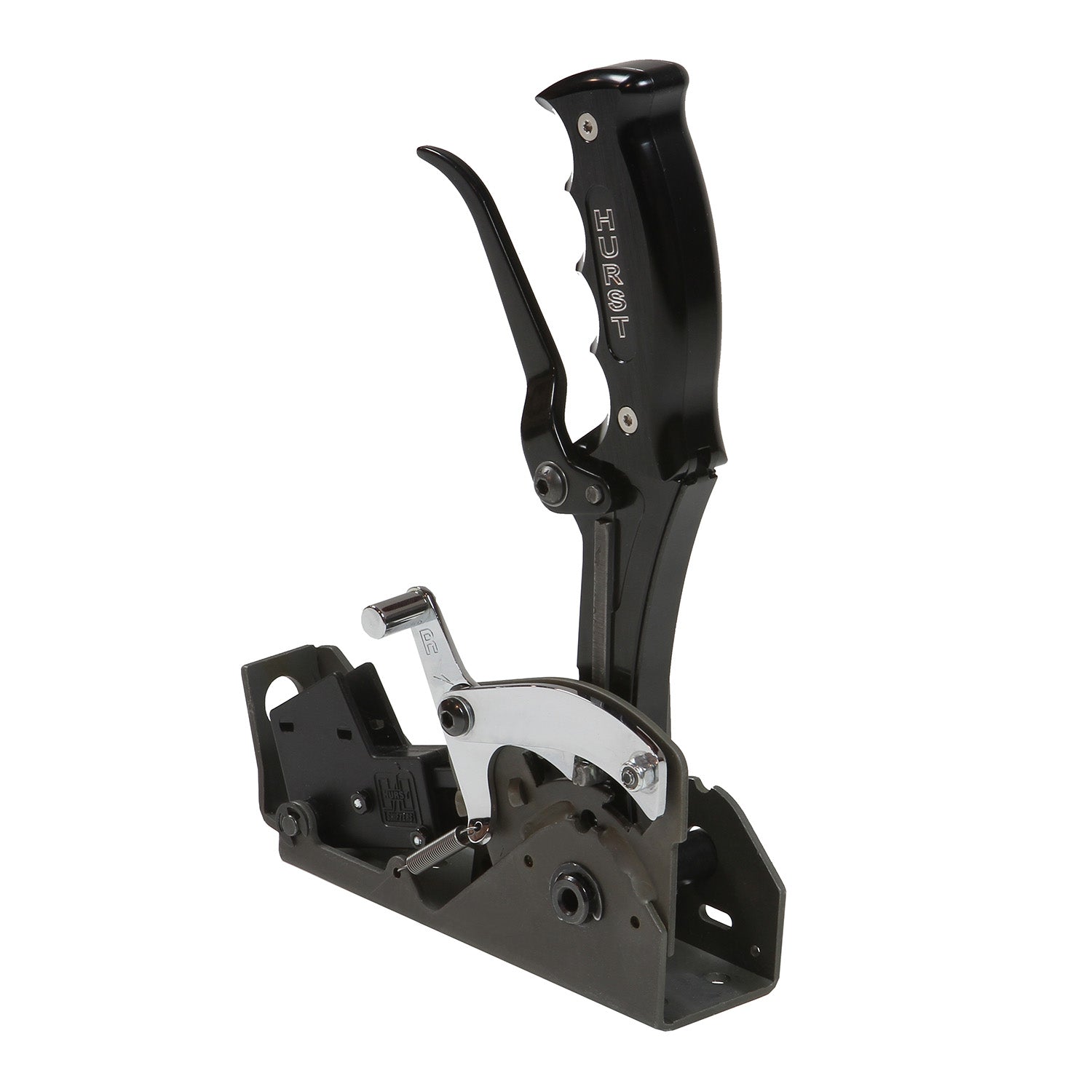 The Hurst® Pistol-Grip Quarter Stick® shifter for popular GM 4-speed automatic transmissions includes all the award-winning features and qualities of our legendary 2 and 3-speed Quarter Stick® race shifters. Features include controlled detent activation preventing missed shifts, reverse Loc/Out which meets NHRA/IHRA safety requirements, neutral safety switch, and an ergonomic handle for a comfortable and positive feel when shifting. The one-piece pistol-grip handle is CNC-machined from billet aluminum for exceptional strength and black anodized for durability. Billet aluminum side grip plates are included, and Hurst also offers a variety of optional replacement plates to customize the look of the shifter. The 4-speed Quarter Stick is designed for use on GM 700R4, 200-R4, 4L60, 4L60E, 4L65E, 4L80E, and 4L85E 4-speed transmissions with forward shift pattern valve bodies. Includes a heavy-duty 5-foot shifter cable, cable bracket, trans lever, detailed instructions, and all necessary hardware for an easy installation. Note: Covers are available separately and not included with the shifter.