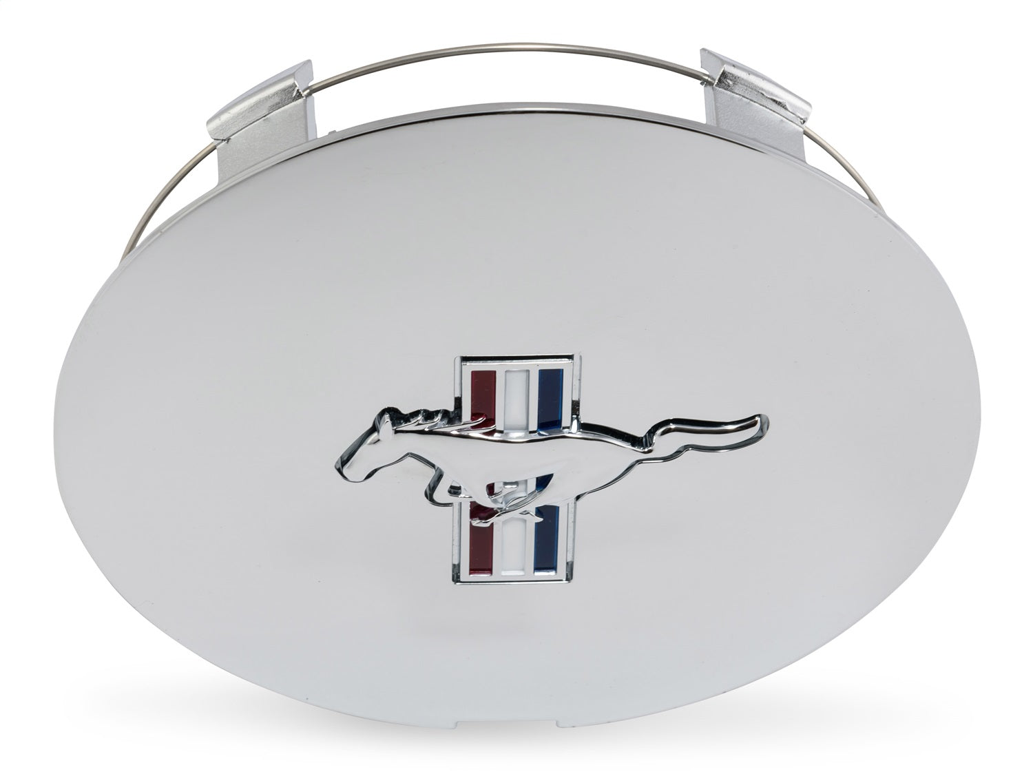 Description_MKT Drake Muscle Cars brings another first to the market with this beautiful reproduction of the 1990-93 Fox Body Mustang Hub Cap. Officially licensed by Ford, it features a smooth shiny Chrome finish with recessed Mustang and Tri-Bar emblem. These Hub Caps fit perfectly on the original 5.0 Mustang stock wheels and are a great finishing touch to your Fox Body.