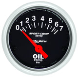 Oil Pressure Gauge - Sport-Comp - 0-7 bar - Electric - Analog - Short Sweep - 2-1/16 in Diameter - Black Face - Each
