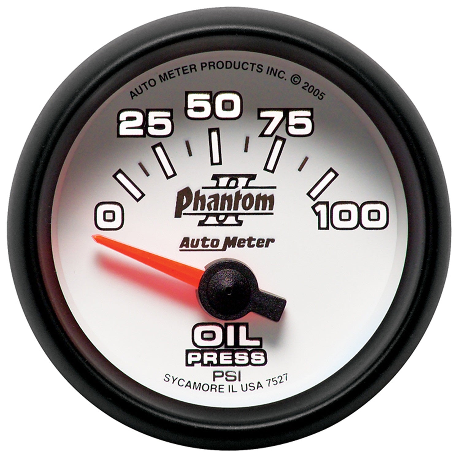 Oil Pressure Gauge - Phantom II - 0-100 psi - Electric - Analog - Short Sweep - 2-1/16 in Diameter - White Face - Each