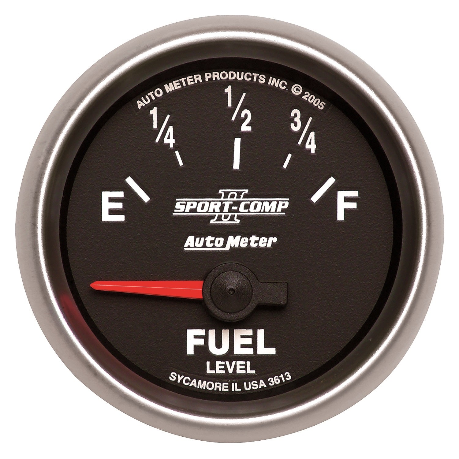 Fuel Level Gauge - Sport-Comp II - 0-90 ohm - Electric - Analog - Short Sweep - 2-1/16 in Diameter - Black Face - Each