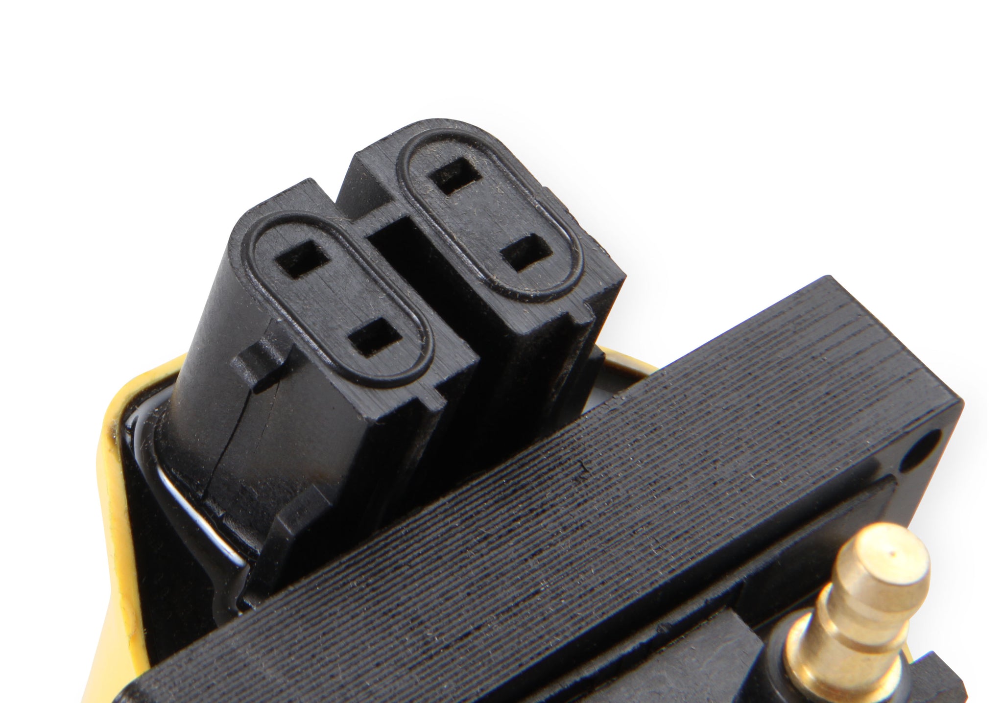 Engineered with optimized low resistance, high turns ratio windings around an M36 high silicone magnetic steel E-core for higher energy and voltage outputs. Compatible with late model GM computer controlled remote mount HEI systems. Direct bolt-in, plug-in replacement. Brass coil wire contact increases energy transfer and resists corrosion better than aluminum. Complete with new mounting hardware.