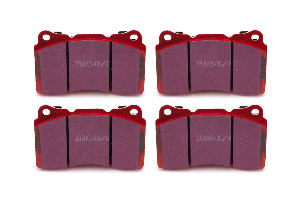 There are TWO reasons our customers love Redstuff, First because they are the lowest dust pad we have encountered by reducing dust by 60-90-percent. Plus the minimal dust you see is very easily removed with a simple sponge wash as it contains no steel fibre particles as in ALL OTHER pads. Second they brake like an alligator right from cold (as good as Original pads or better) and just get better as they heat up.This material is a Synthetic Fiber based brake compound enhanced with ceramic particles. If you have previously tried EBC redstuff (pre-ceramic compound) this material is light years ahead. It lasts longer; it brakes better and is quieter. Being a hard wearing pad, bed-in times can be as long as 1000 miles and drivers must be patient until the pad takes up the shape of their disc (brake rotor). This is a truly impressive fast road pad for repeated heavy braking.It emits far less dust than semi-metallic pads and has been proven to stop a passenger car/sedan/sport compact/hot hatch 13 metres quicker than OEM pads from 100mph/160kph. Features EBC Brake-In surface coating which conditions rotor surface and accelerates pad bed-in. Nominal friction coefficient 0.5 with approx. 50-percent dust reduction.Most EBC Red Ceramic pads are approved to ECE R90 brake safety regulation.