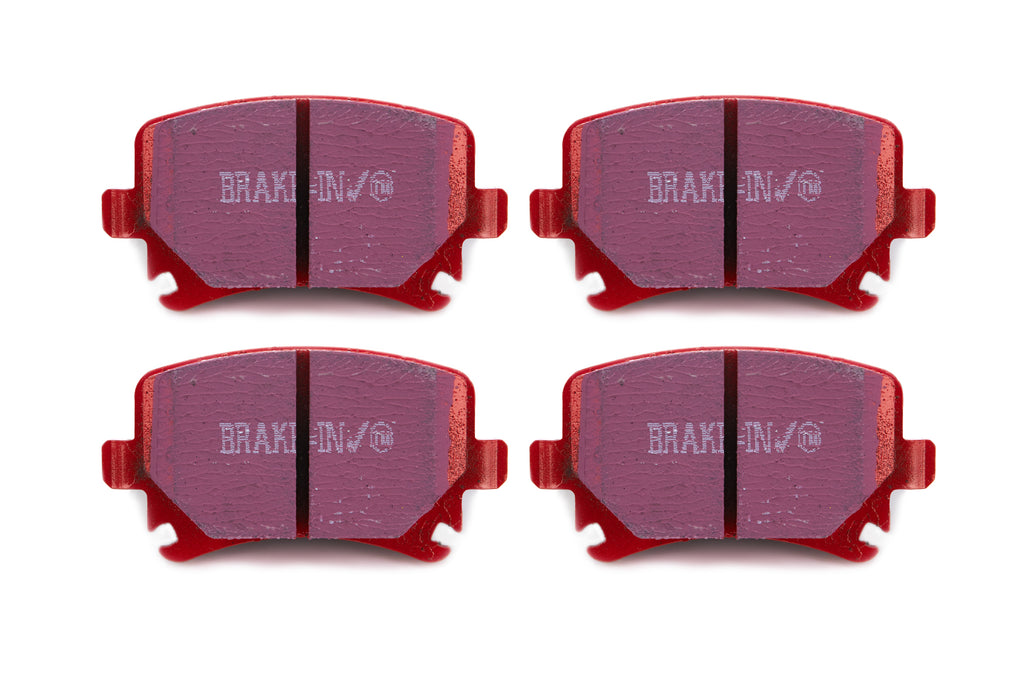 There are TWO reasons our customers love Redstuff, First because they are the lowest dust pad we have encountered by reducing dust by 60-90-percent. Plus the minimal dust you see is very easily removed with a simple sponge wash as it contains no steel fibre particles as in ALL OTHER pads. Second they brake like an alligator right from cold (as good as Original pads or better) and just get better as they heat up.This material is a Synthetic Fiber based brake compound enhanced with ceramic particles. If you have previously tried EBC redstuff (pre-ceramic compound) this material is light years ahead. It lasts longer; it brakes better and is quieter. Being a hard wearing pad, bed-in times can be as long as 1000 miles and drivers must be patient until the pad takes up the shape of their disc (brake rotor). This is a truly impressive fast road pad for repeated heavy braking.It emits far less dust than semi-metallic pads and has been proven to stop a passenger car/sedan/sport compact/hot hatch 13 metres quicker than OEM pads from 100mph/160kph. Features EBC Brake-In surface coating which conditions rotor surface and accelerates pad bed-in. Nominal friction coefficient 0.5 with approx. 50-percent dust reduction.Most EBC Red Ceramic pads are approved to ECE R90 brake safety regulation.