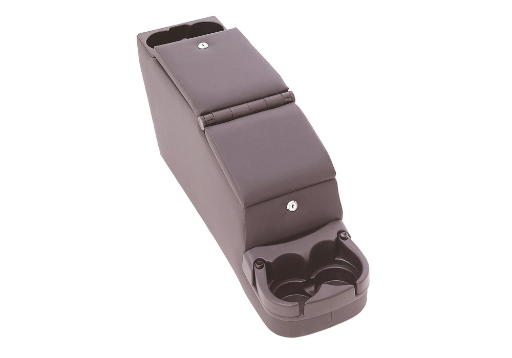 Deluxe locking center console has fully adjustable front cup holders and rear cup holder for back passengers. Extra-large comfortable padded armrest with dual-locking hidden storage area for CDs and cassettes. The console does not interfere with fold & tumble rear seat in folded up position.