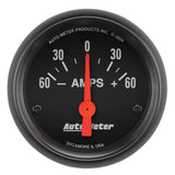 Ammeter - Z-Series - 60-0-60 amps - Electric - Analog - Short Sweep - 2-1/16 in Diameter - Black Face - Each
