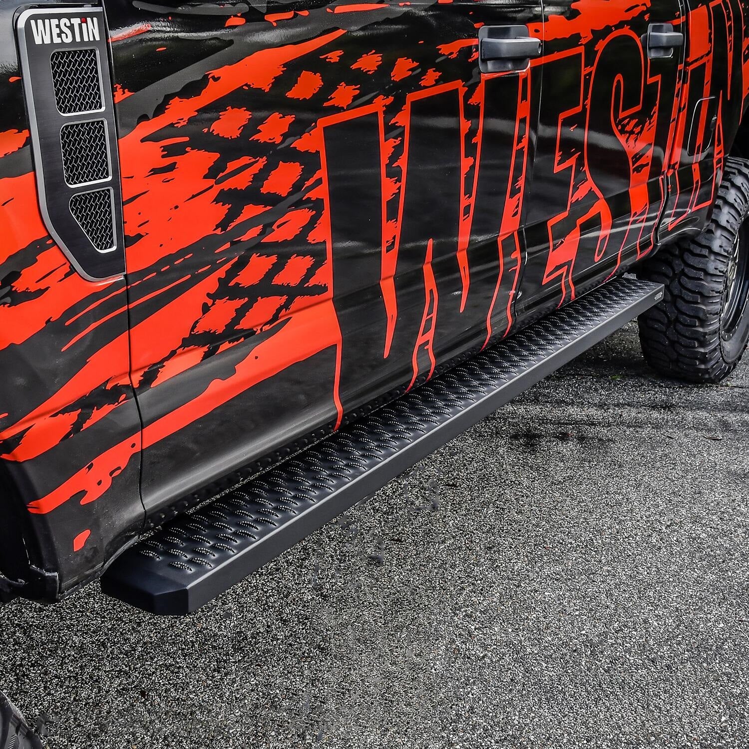 Description_MKT Westins Grate Steps Running Boards are engineered to provide maximum traction without sacrificing style. The 6 1/4 in. step surface width features an aggressive 1/4 in. high punched tread allowing traction in any weather condition. The unique serrated edges help clean dirt, snow and mud off your boots to keep truck cab clean. Grate Steps Running Boards feature stylishly formed and fully welded ends with a custom die-cast riveted logo badge. E-coated base coat provides long lasting corrosion protection which far surpasses that of the competition. Solid 1-piece construction makes the Grate Steps Running Boards ideal for construction, commercial, vans and utility use. Available in universal lengths (54 in., 68 in., 75 in., 79 in., 83 in., 86 in. and 90 in.) with vehicle specific mount kit required, sold separately. Available in textured black finish.